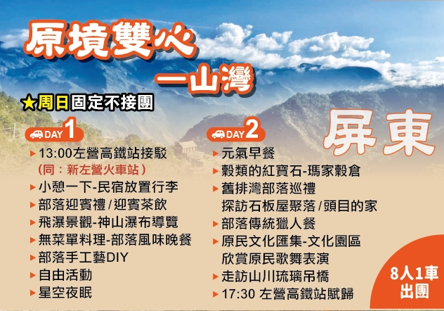 4.屏東-原境雙心-山灣:滿8人一車成團