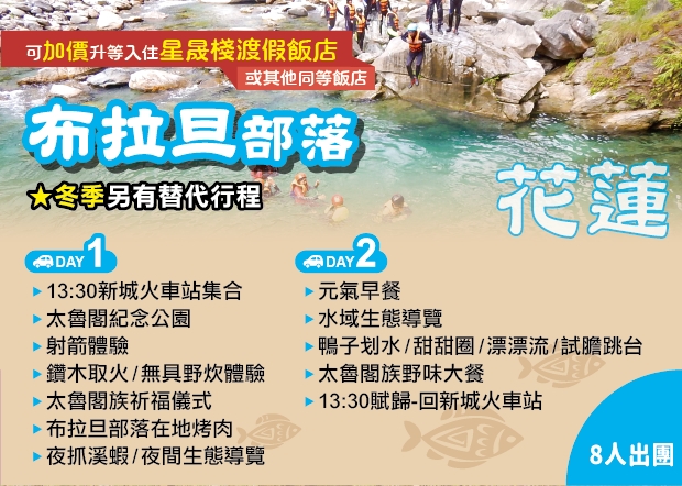 3.花蓮-布拉旦部落:滿8人成團